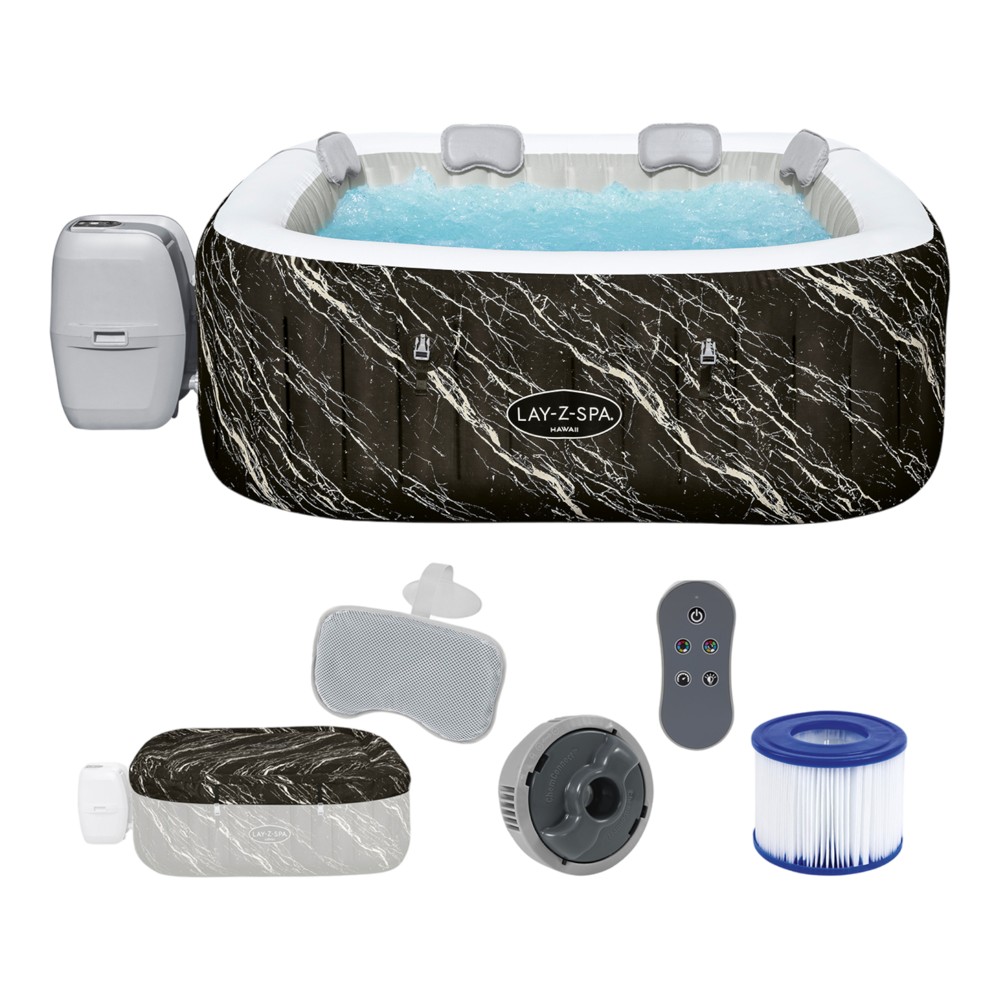 You're reviewing:Hydromassage pool Bestway Hawaii AirJet LED, PVC, black marble design, Dia.180xH66 cm / 778 Lt
