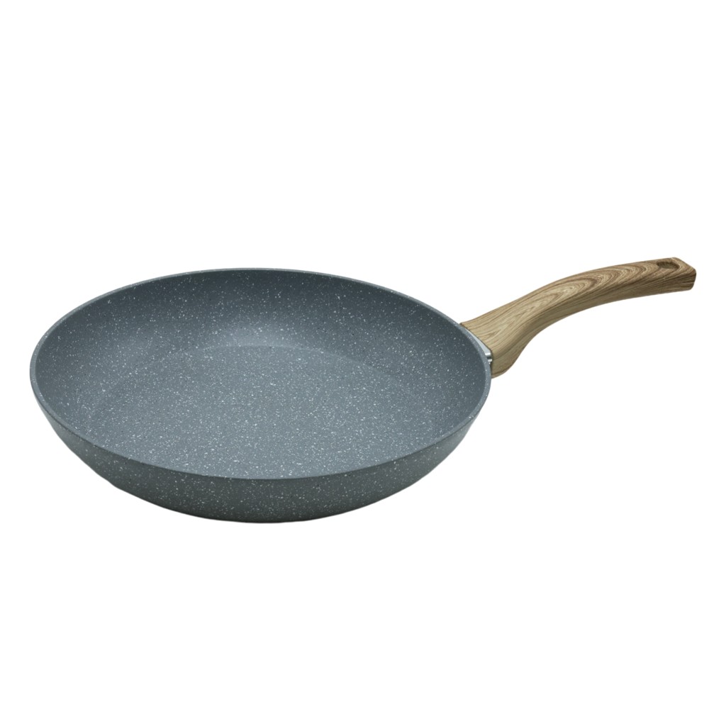Granite pan, ideal for frying and various home cooking. The heat-resistant handle enables practical and safe cooking. Thanks to the innovative coated aluminum material, heat is distributed evenly and very efficiently. Also, this material enables non-sticking of food during cooking. The pan is suitable for all types of plates, gas, electric or induction. It is recommended to use accessories that do not damage the material of the Germanitium coating, such as: wooden spoons, silicone, etc. Size 30 x H. 8.1 cm