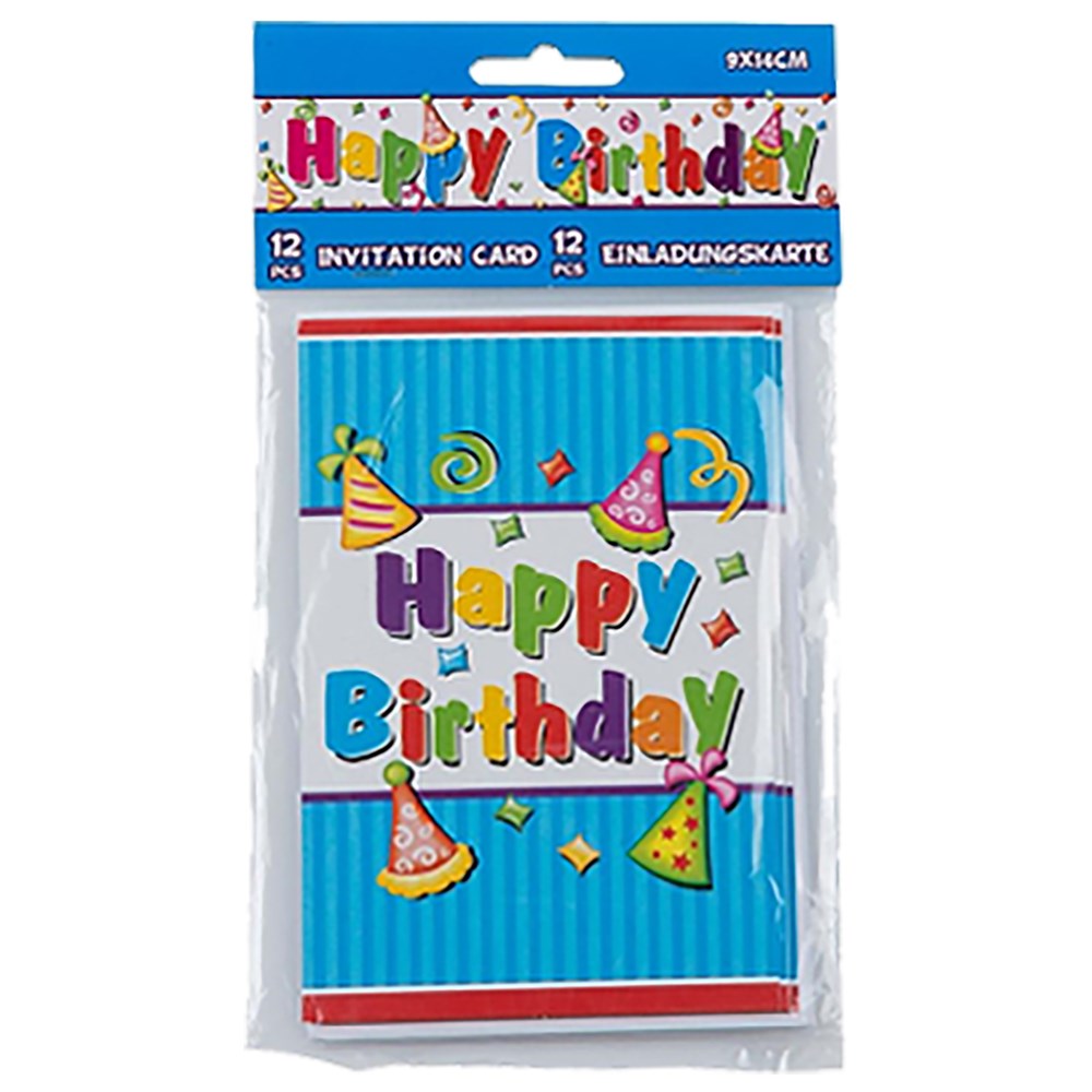 Invitation card, "Happy Birthday", for party, cartoon, 9x14 cm, 6 pieces, 1 pack