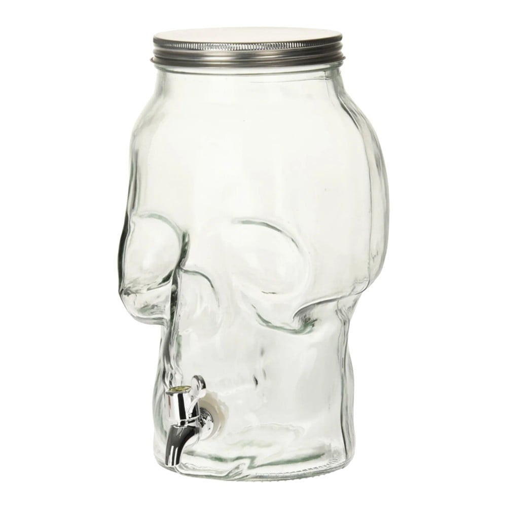 Jar with faucet, halloween, skull shape, glass, 1 lt, 1 piece