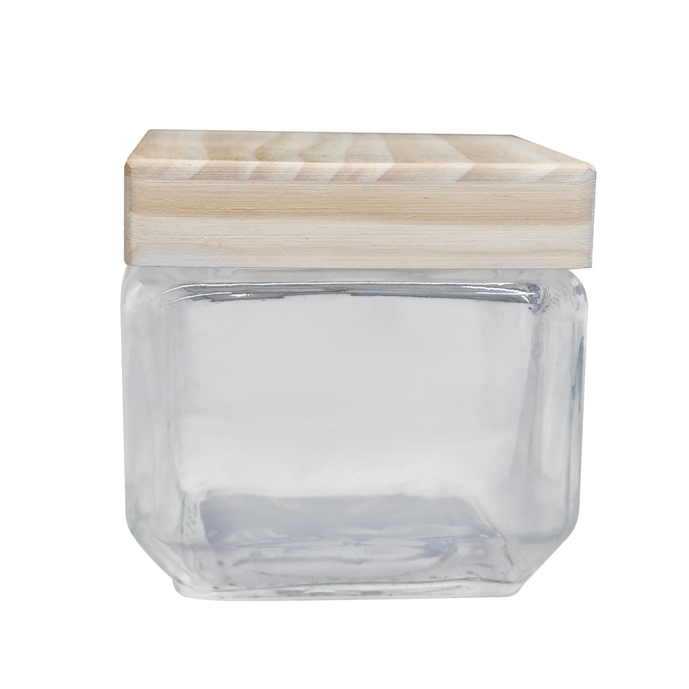Jar with lid, glass+wood, transparent, L. 11.3 x D. 11.3 x H. 10.8 cm, 0.85L