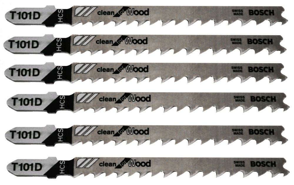 The Bosch T101D Jigsaw Blades are the ideal for Wood.They make clean,straight and fine cuts.They are suitable for softwood, chipboard, wood core plywood, fibre boards (10-45 mm).They come in a pack of 5.