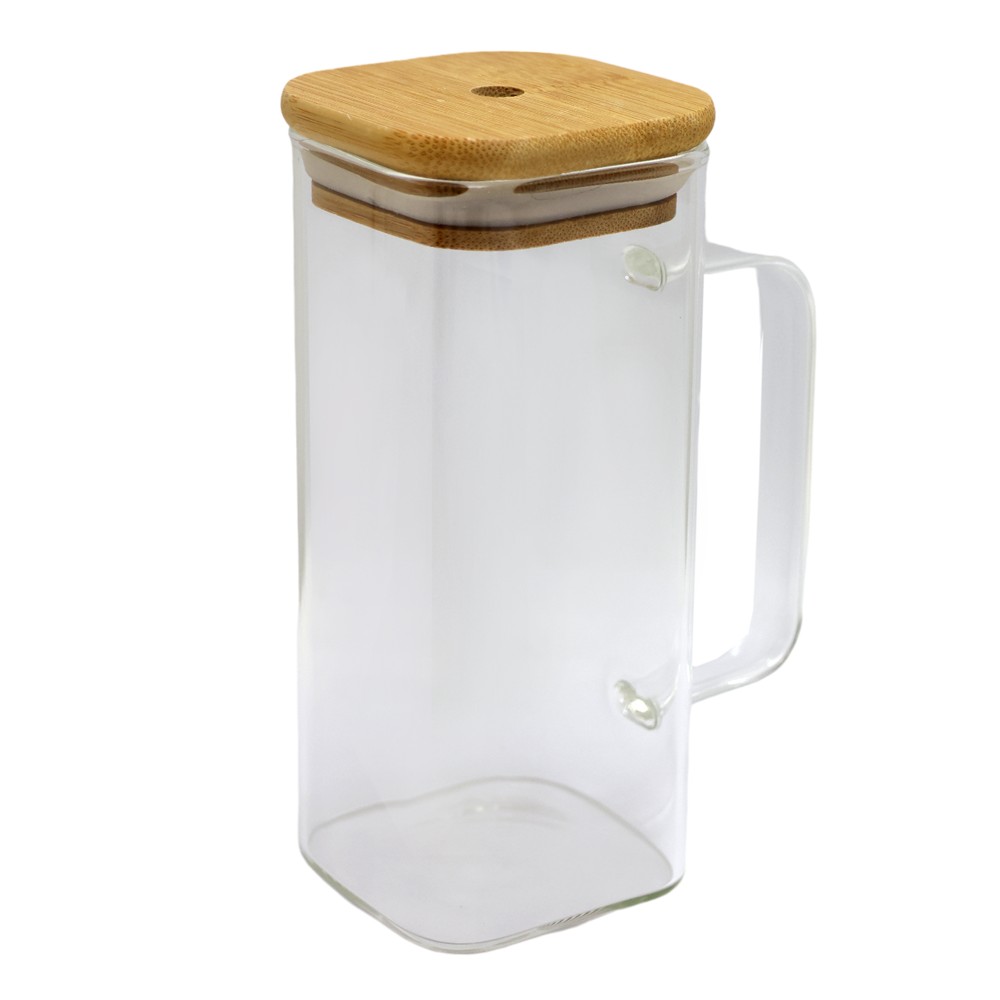 The juice glass with lid, made from a combination of glass and bamboo, is transparent and has a height of 14 cm, with a capacity of 380 ml. This glass offers a convenient choice to store and serve liquids in a safe and sustainable way. The transparent design makes it easy to see the contents inside, while the lid keeps the contents safe and fresh for longer. The use of glass and bamboo materials makes it durable and suitable for daily use. Cups with lids are ideal for use at home, in the office, or to take with you on a trip to use on the go.