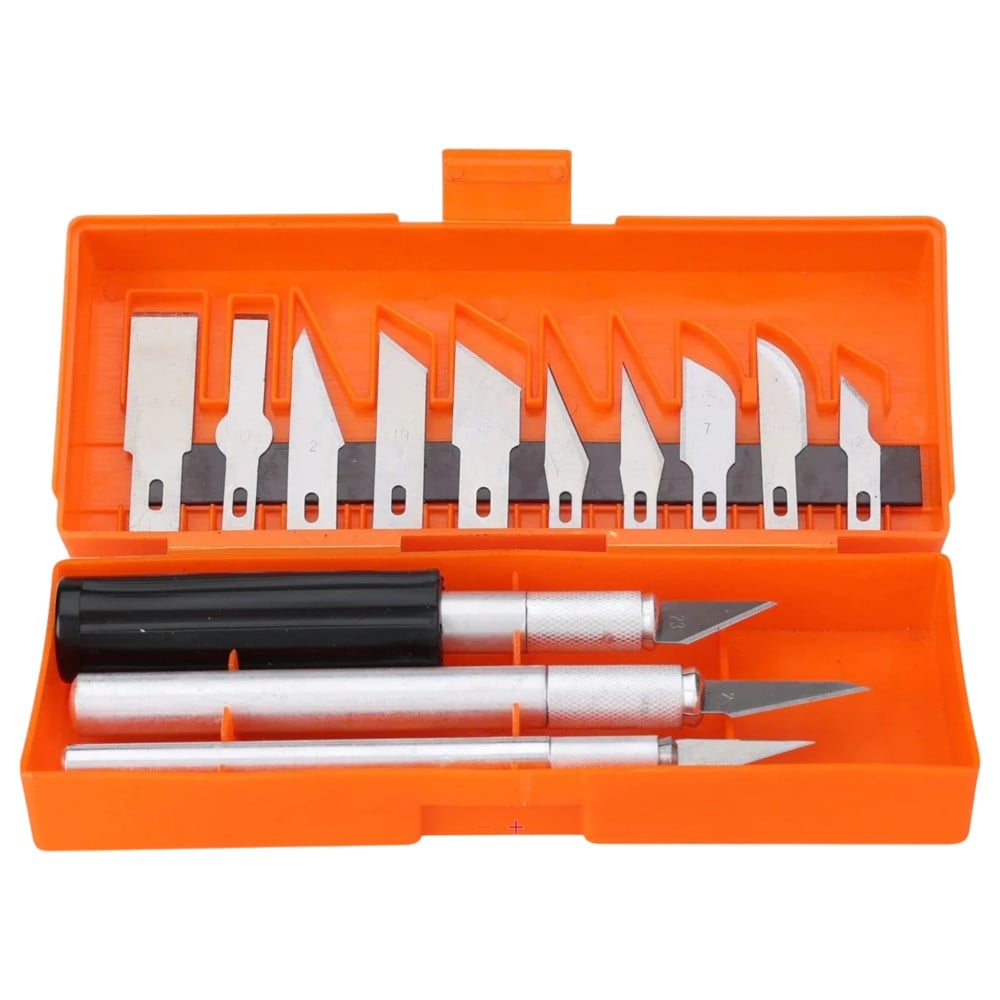 This knife set contains 3 knives and 10 carbon steel spare blades packed in a convenient storage case which are applicable for a variety of applications.