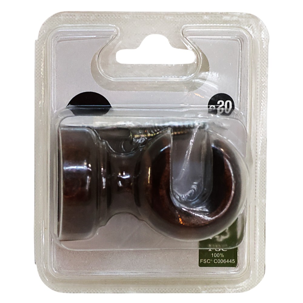 Knobs for curtain rod, woos, dark brown, Dia. 20 cm