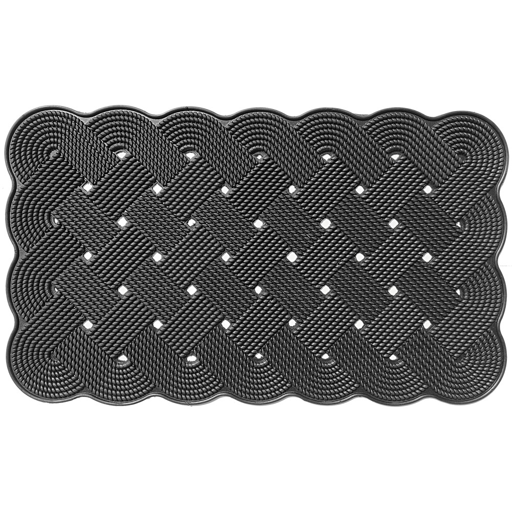 The product "Knots door mat" is a mat designed for indoor use to contain and absorb water, dust, and other contaminants from the feet of persons entering homes or other indoor environments. Made entirely of rubber, this mat offers a durable and effective solution to cleaning your feet.