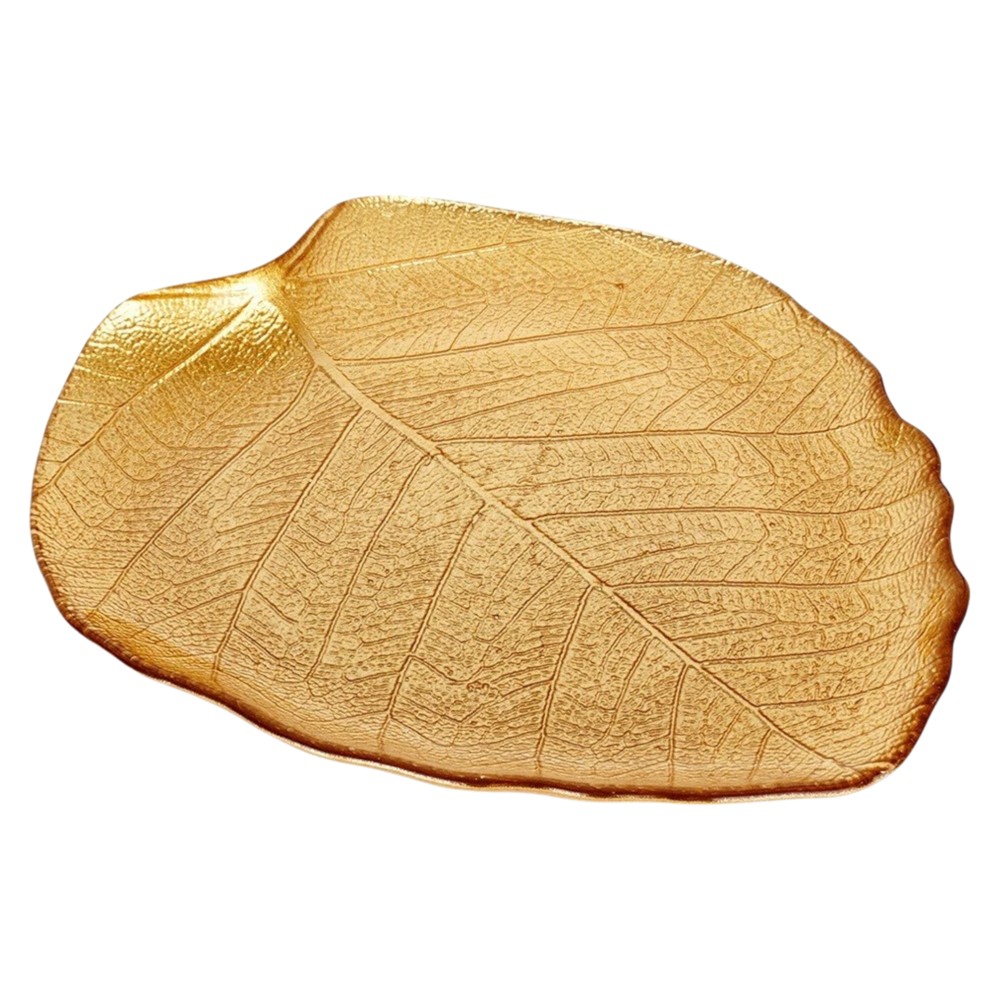 Gold-colored glass bowl, size 27x 24x H 2.8 cm. This elegant glass bowl has a bright gold color that gives a luxurious touch to any environment. Measuring 27x 24x H 2.8 cm, it is perfect for serving desserts or decorative use. Suitable for special occasions, parties or any occasion where you want to add a sophisticated detail.