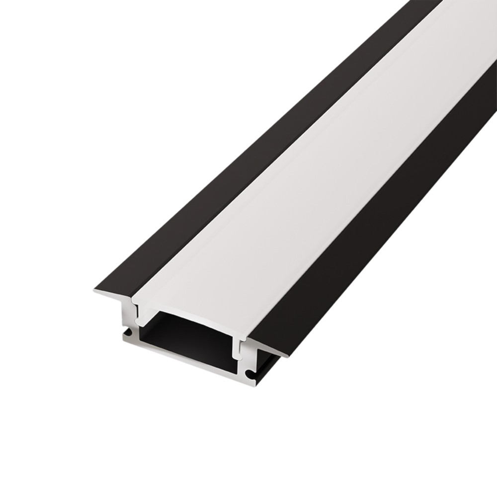 LED strip channel, for plaster, 2000x24.5x7mm, aluminum, black. The channel is very necessary for the LED strip as it helps it from overheating without damaging the strip or the risk of fire if used in a closet. It also makes the strip give a uniform lighting by eliminating visible LED spots.