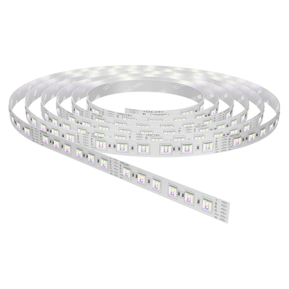 LED lighting strip, RGB+white, 12W/m, 24V, 1600lm/m. Thanks to its flexibility, it can be adapted to any position, solving the problem of dark spaces and adding beauty and elegance to the environment. LED lighting strips are the perfect solution for creating different configurations or contouring different elements of the interior space.
