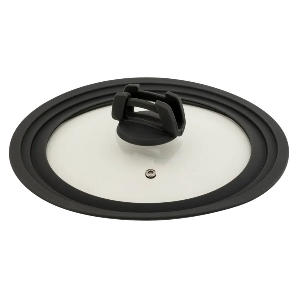 Universal glass lid, suitable for all pans and pots with a diameter of 27.5 cm. Constructed of tempered glass material, this model is several times stronger and safer than plain glass lid models.