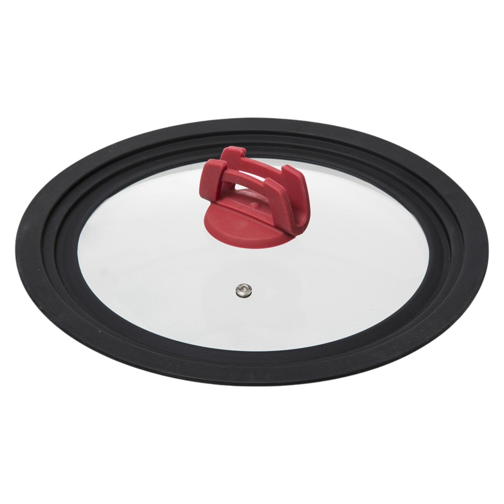 Universal glass lid, suitable for all pans and pots with a diameter of 31.5 cm. Constructed of tempered glass material, this model is several times stronger and safer than plain glass lid models.