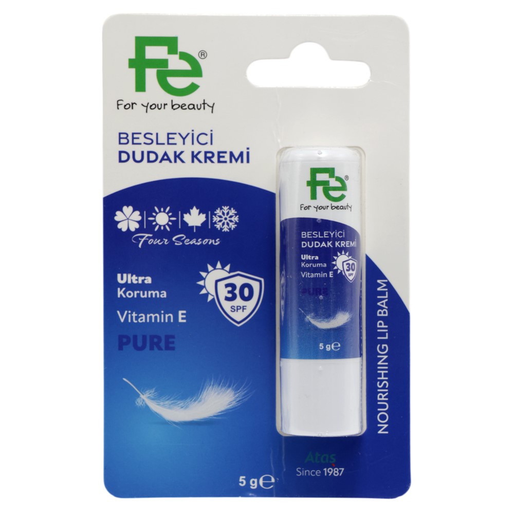 Fe Lip Balm, Four Seasons, with SPF30 and Vitamin E, 5 gr. Designed to protect and nourish lips, providing hydration and sun protection. Ideal for daily use, it helps prevent dryness and chapping of lips.