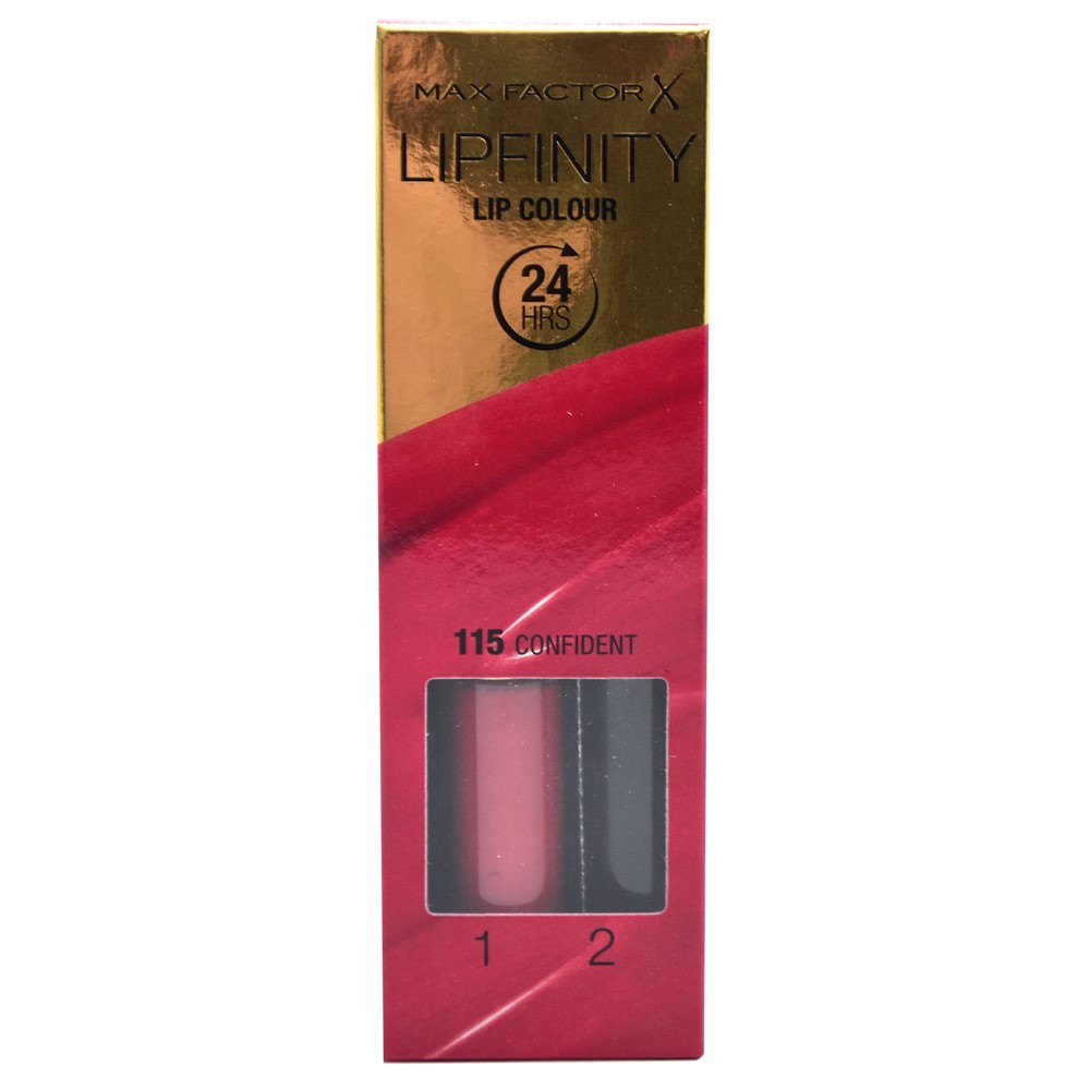 You're reviewing:Liquid lipstick and moisturizing balm set, 115 Confident, LipFinity, 2-step Long Lasting, Max Factor, plastic, 2.3 ml + 1.9 g, coral pink, 2 pieces