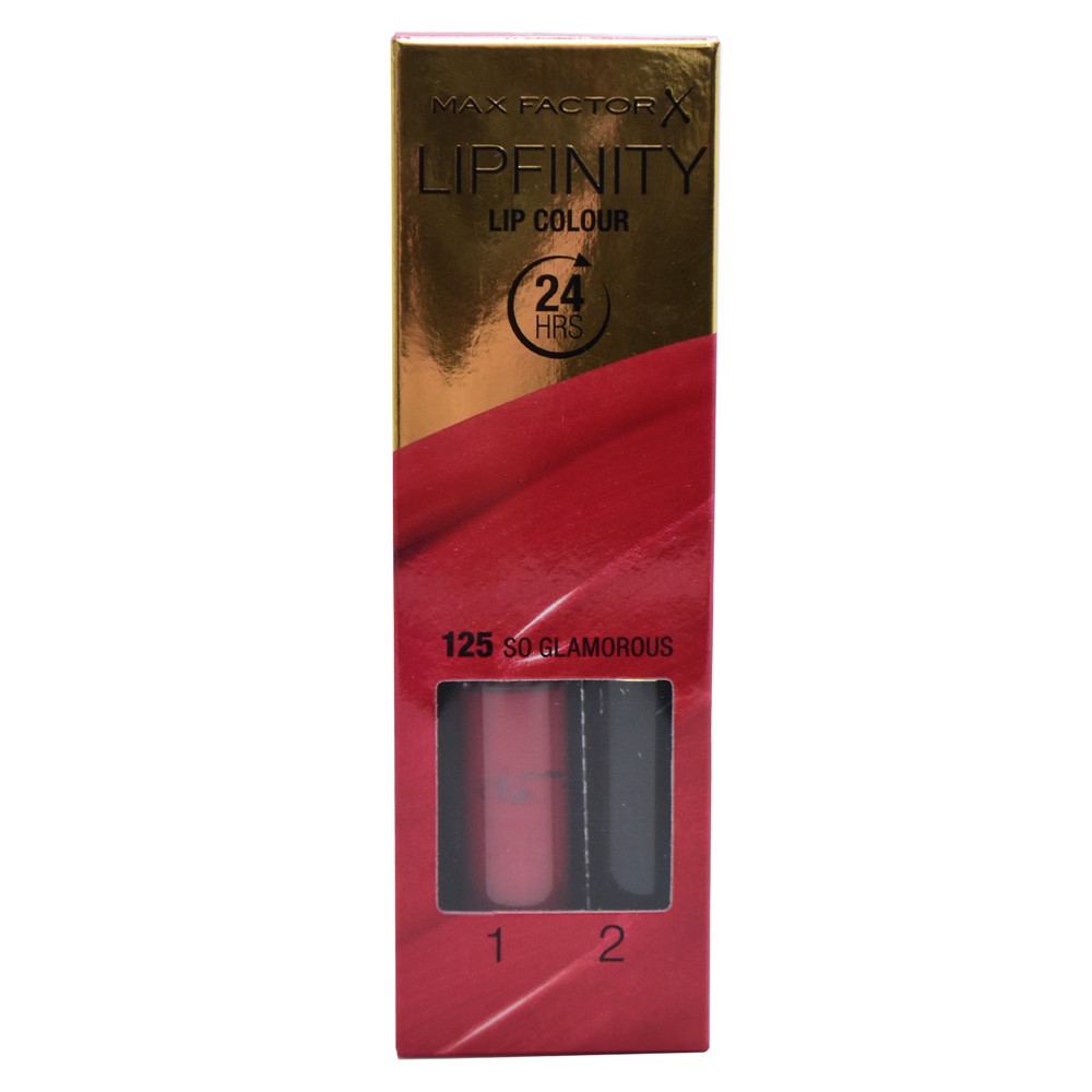 You're reviewing:Liquid lipstick and moisturizing balm set, 125 So Glamorous, LipFinity, 2-step Long Lasting, Max Factor, plastic, 2.3 ml + 1.9 g, scarlet red, 2 pieces