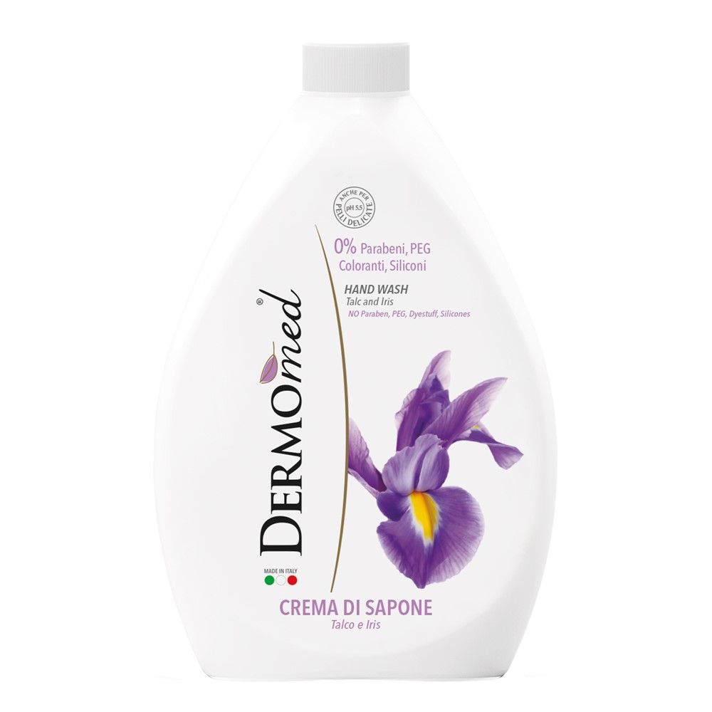 Liquid soap, enriched with iris flower extract and talcum powder, which nourishes and hydrates the skin, regenerating it. This product has a delicate floral and fruity scent and is suitable for all skin types.
