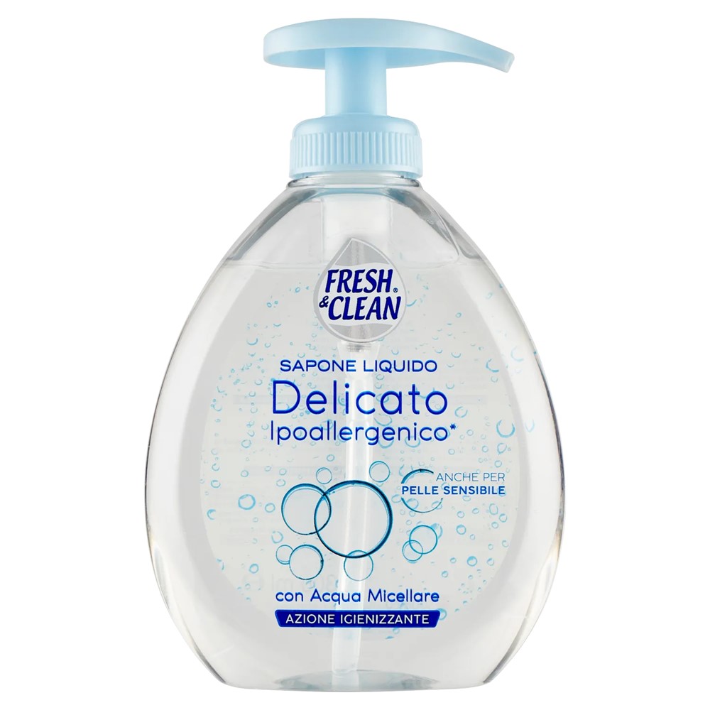 Fresh&Clean Liquid Soap, rich in micellar water, gently cleanses and maintains the skin's pH, leaving it smooth, cleansed and revitalized. This product is also ideal for cleaning the face or removing make-up. Liquid soap with pH 7 is ophthalmologically tested and for people with sensitive skin, to guarantee a thorough cleaning that does not irritate the eyes and does not cause allergies.