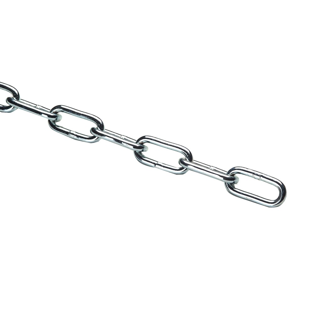 Long link chain electro galvanized, 5mm, 32mts material steel, weight capacity 300 kg/mt