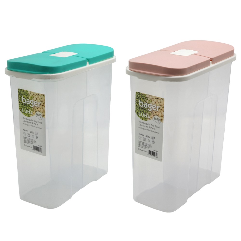 This is a practical storage container from the Luna series, specifically designed to store cereals, dried fruits, nuts, seeds, or other dry foods in an organized and fresh manner. Made from durable and food-safe plastic, this container has a transparent body that allows you to easily see the contents and food level. The main feature of this container is its design with 2 separate compartments. This enables you to store two different types of cereals, dried fruits, or other dry foods within the same container, keeping them separate and preventing them from mixing. This is particularly useful if you want to keep different breakfast cereals or different types of dried fruits for snacks. With a large capacity of 2850 ml, this container offers enough space to store significant quantities of dry food, helping to keep your kitchen organized and your food fresh for longer. This Luna 2-compartment storage container is an excellent solution for keeping your kitchen organized and your dry food fresh. Its practical design and large capacity make it a valuable addition to any home.