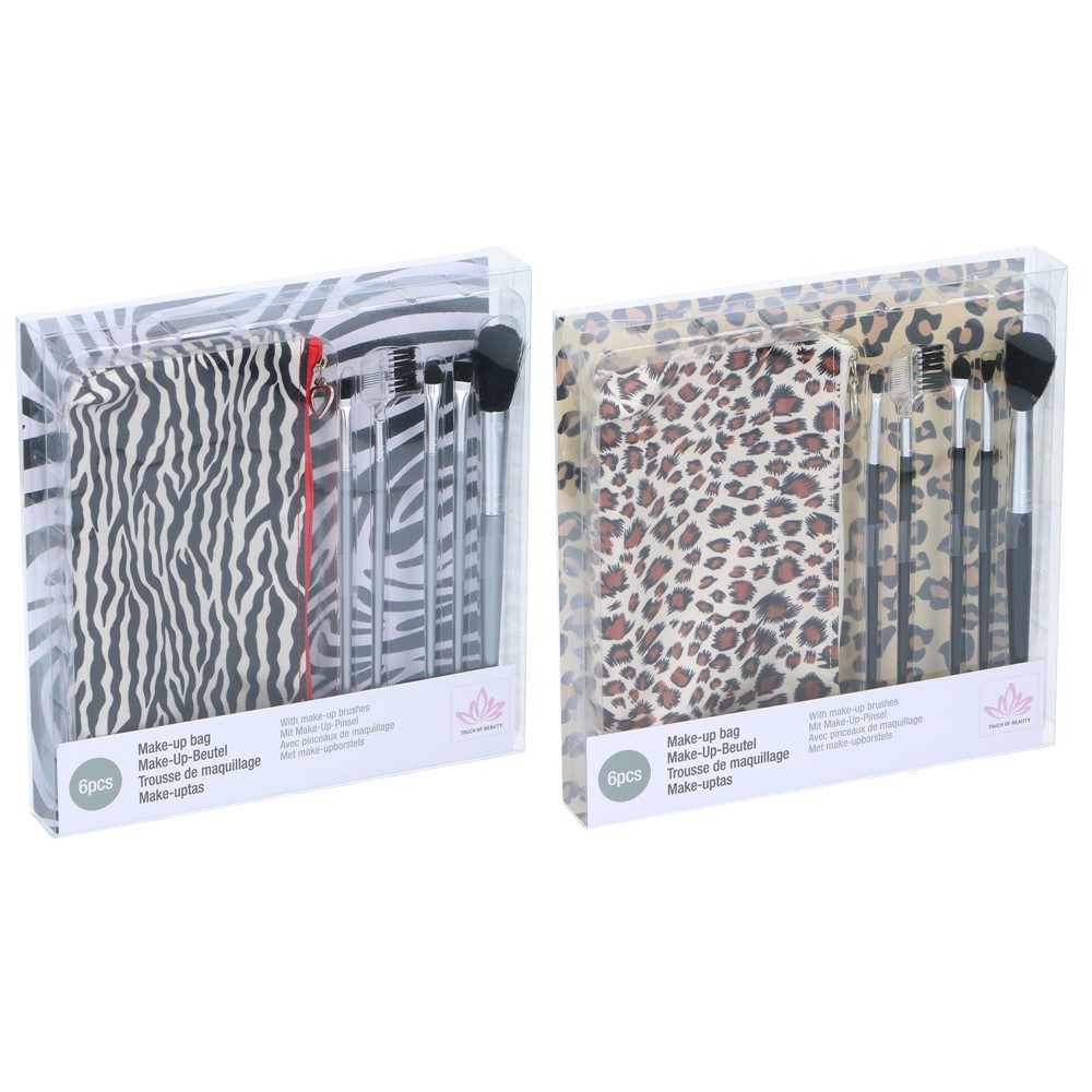 The set of brushes with cosmetic bags includes 5 brushes for makeup, made of synthetic and anti-allergic fiber materials of the brush, with plastic and metal in different colors. Used to apply makeup and powder and cheeks without irritating the skin. Each element that makes up the makeup brush set is very easy and practical to use. The products are very easy to clean and are very durable.