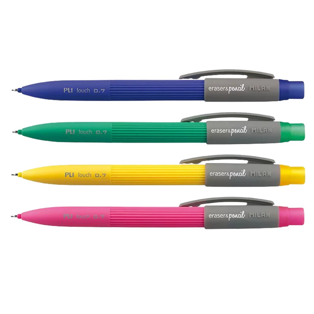 Mechanical pencil, with a 0.7 mm diameter tip, made of plastic material and soft rubber coating, which makes it ergonomic and suitable for use by children. It is used to write or make various drawings and sketches. This product is used with 0.5 mm leads with code 55608, 789273.