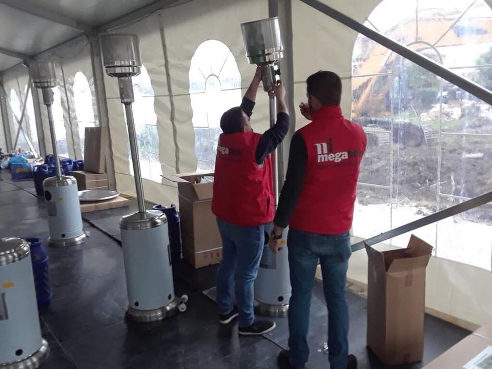 In a collaboration with the Association of Albanian Producers, Megatek has completed in record time the canteen of the civil emergency camp that was set up in Thumane, two days after the disaster. More than 20 gas heaters have been installed in the emergency camp to alleviate the cold, and portable beds, camping umbrellas or blankets have been provided by Megatek to accommodate homeless families.