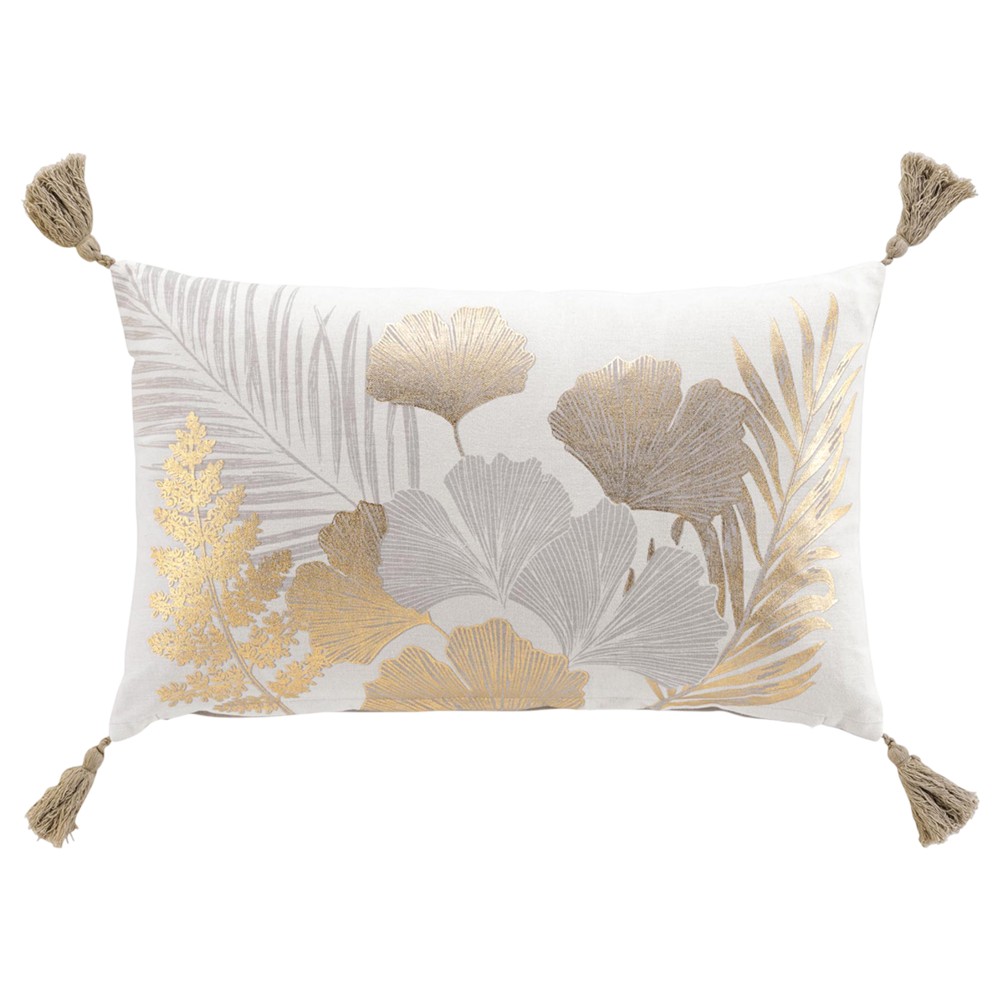 Melisse decorative pillow, cotton/polyester, white/gold/grey, 30x50 cm