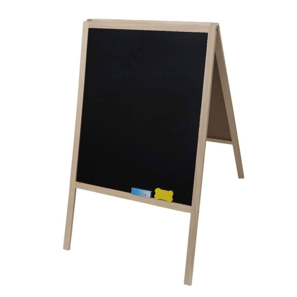 This wooden menu board is ideal for presenting offers, menus or announcements in a practical and elegant way. With a double-sided design, it offers double the writing space, making it perfect for restaurants, cafes, bars or shops. The smooth black surface allows for clear chalk writing and easy erasing without leaving marks, while the wooden structure gives it a natural and attractive look. With dimensions of 44x70 cm, it is compact and easy to place anywhere.