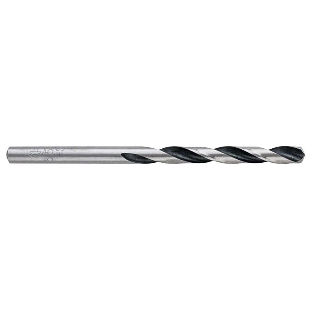 Twist drill bit made of high speed steel manufactured to DIN 338. Type N, drill bit tip 135°. Rolled spiral flute with ground point, vapour-plated.Shank equal to drill bit diameter. Two-cutter, cylindrical, two flutes. High elasticity due to low-heat shaping manufacturing process. Low risk of breakage - especially when drilling with diameters smaller than 6mm. Spiral flute with oxide coating for rapid chip removal. Suitable for steel , non-ferrous metals, cast iron, hard plastics.