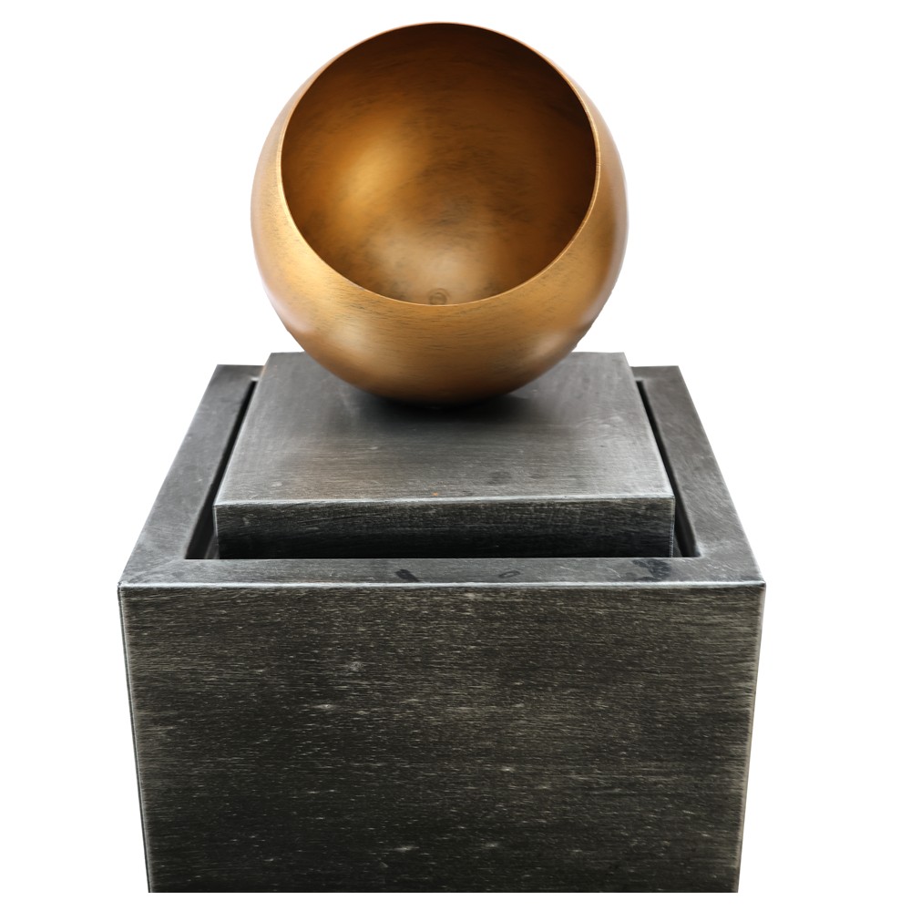Metal fountain W/one warm white LED with water pump 10m cable. Product size:29x29x40cm. They have the appearance of natural stone. To add a relaxing and beautiful element to your surroundings and to bring nature near you, this fountain is the solution. They can be placed inside or outside.