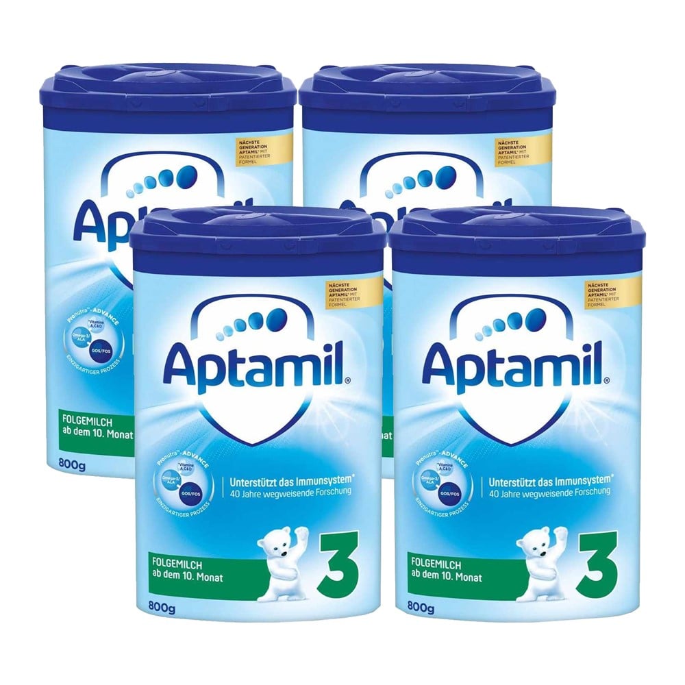 Aptamil Pronutra 3 milk is suitable from the age of 10 months after any other complementary milk. It is suitable during the transitional phase during which the child will switch to regular meals. The recipe is palm oil and starch free. The nutrients, minerals and vitamins it contains are perfect for healthy growth and development at this age as part of a mixed and varied diet.