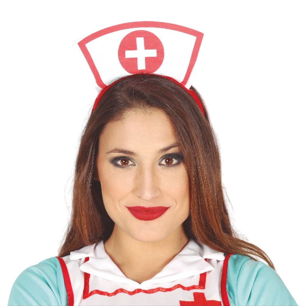 Mini nurse hat, halloween, white/red, polyester, 1 piece