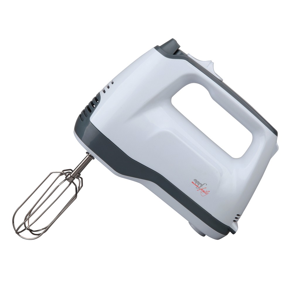 Electric hand mixer Melchioni 250W. Beater with whisks for mixing and kneading. Operation: 5 speed levels. Accessories: steel whisks for mixing and kneading. Whip ejection button. Power supply: AC 220-240V ~ 50/60Hz. Color : white/grey.
