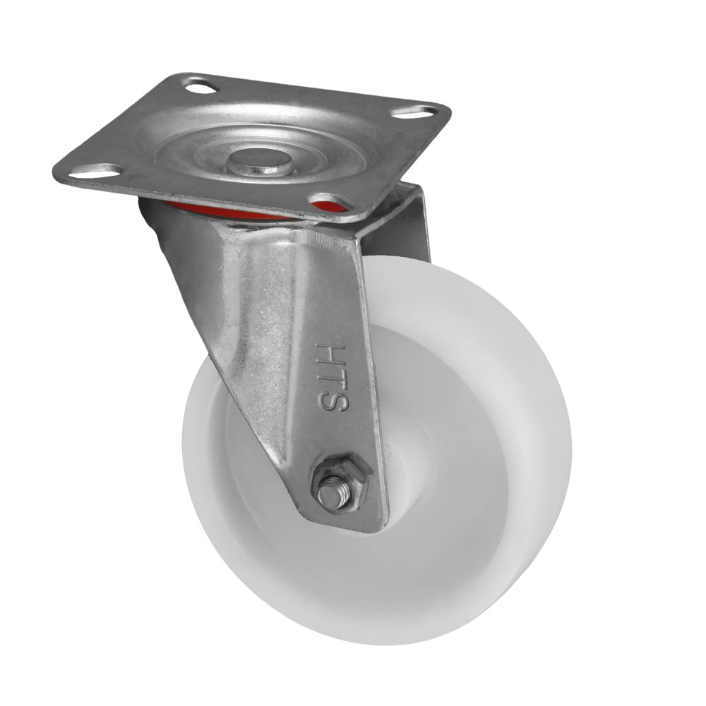 This caster helps move heavy loads on smooth, hard surfaces and finished concrete floors where quiet movement and floor protection are vital. The caster swivels 360-degrees for ease of use . It attaches easily with a plate and 4 screws.
