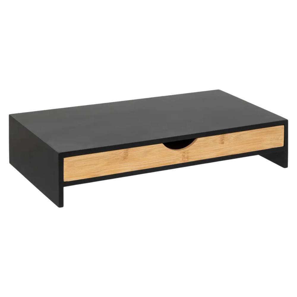Monitor and laptop holder "Bava" in MDF, baboo material, black color. Dimensions, H : 10 cm, W : 47 cm, D : 25 cm.
