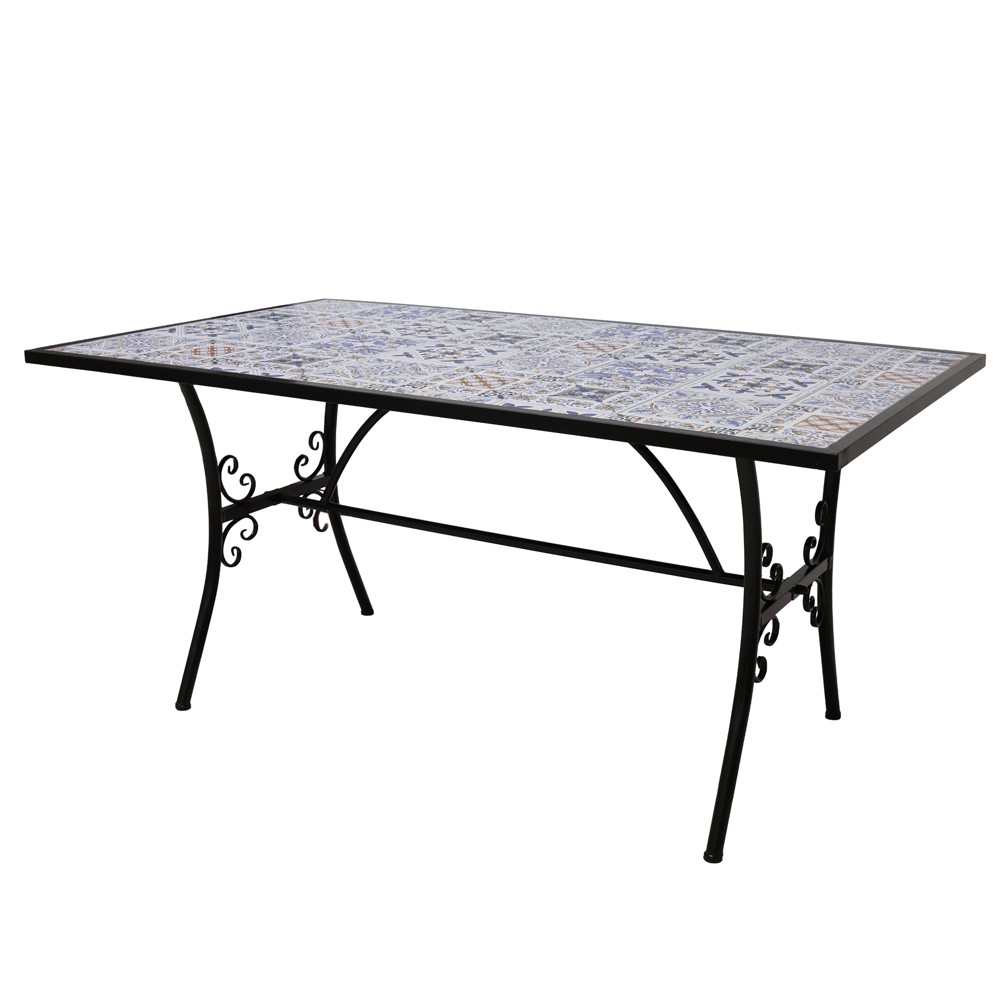You're reviewing:Mosaic table, metal/ceramic, black frame, white/blue top, 160x90xH75 cm