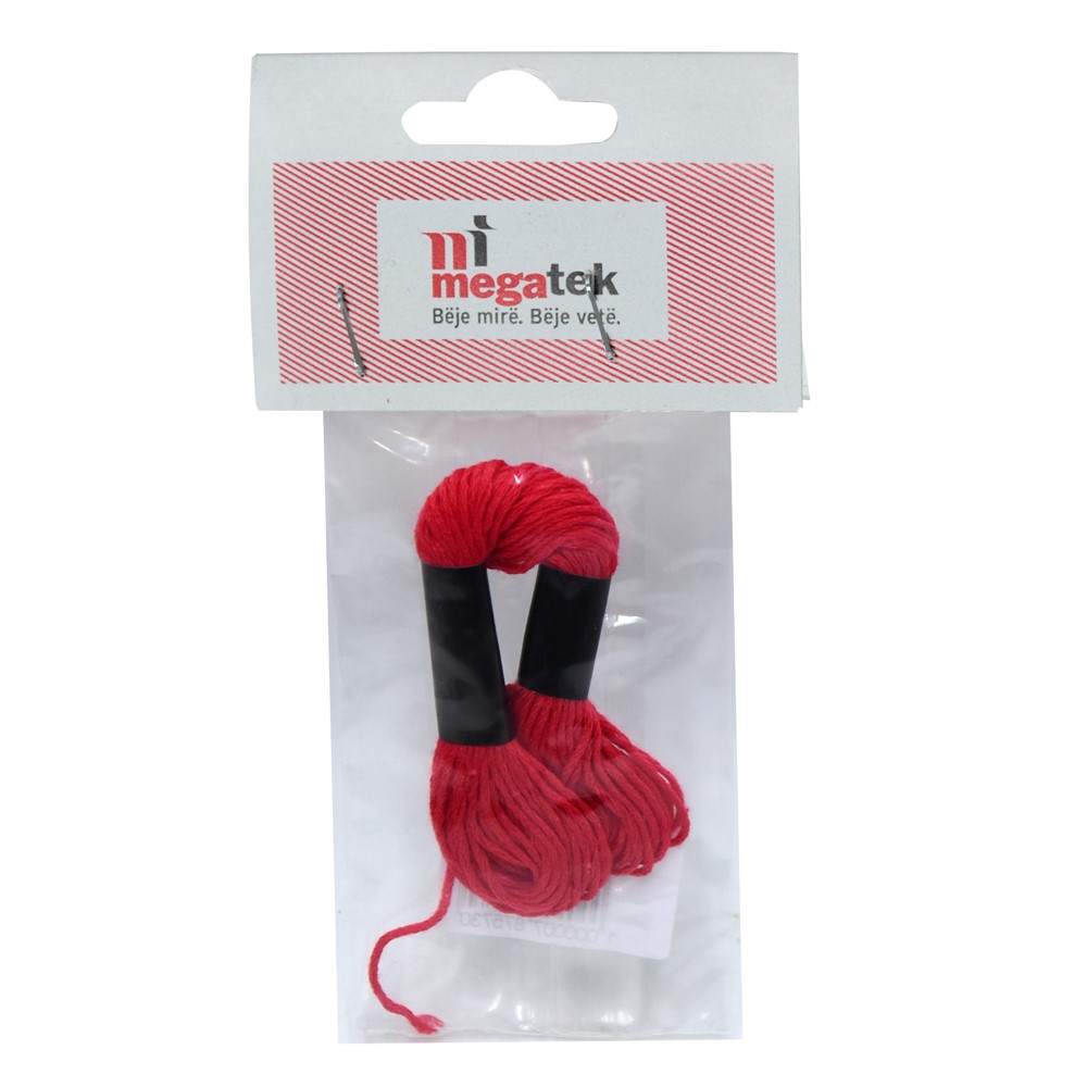 Mouliné thread, which contains 8 m of embroidery thread, made of knitted cotton material, in red color. It can be used to embroider and decorate textile pieces of different materials. This product is suitable for professional use, in tailoring and atelier shops, and for non-professional use, in home environments.