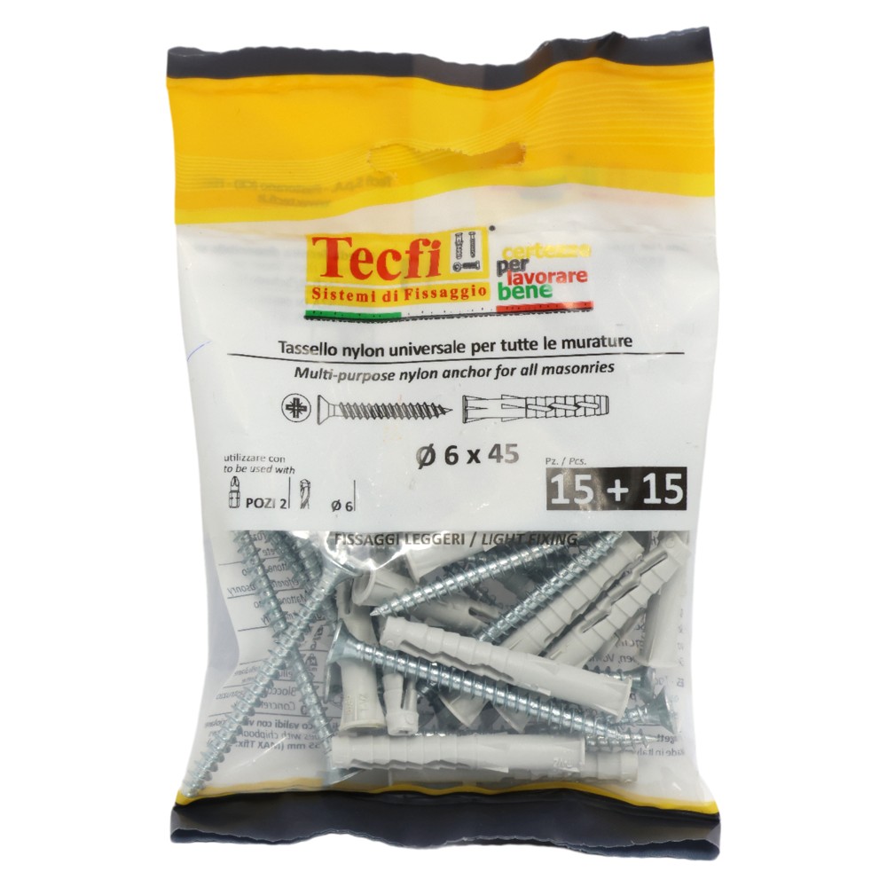 You're reviewing:Multi-purp.rim.Nylon anchor w/flat CSK hd. screw zp, Ø 6x45mm, Bag 15