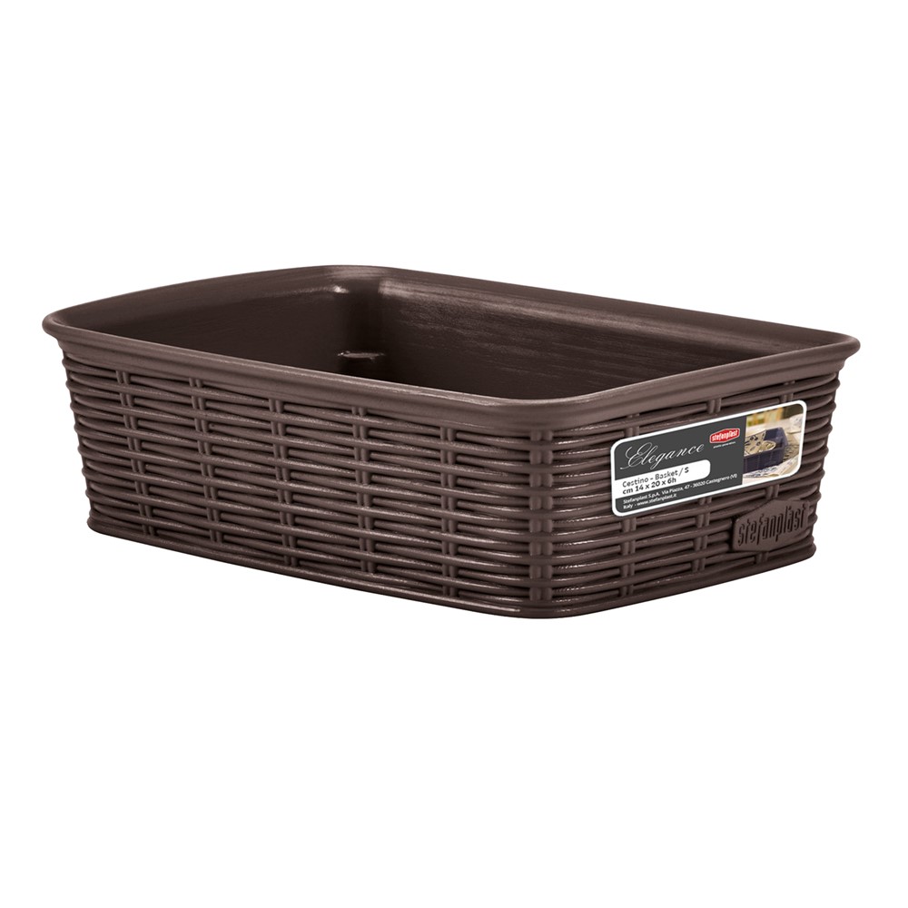 The rectangular basket from the Elegance line, in moka color and measuring 20x14xH6 cm fits in the bathroom, in the living room or in the kitchen. The basket is an excellent alternative to wicker baskets, which means it has a plastic material, to give the idea of knitting but with a simple and smooth structure. This modern design combined with utility values makes the basket fit perfectly into the arrangement of any interior space.