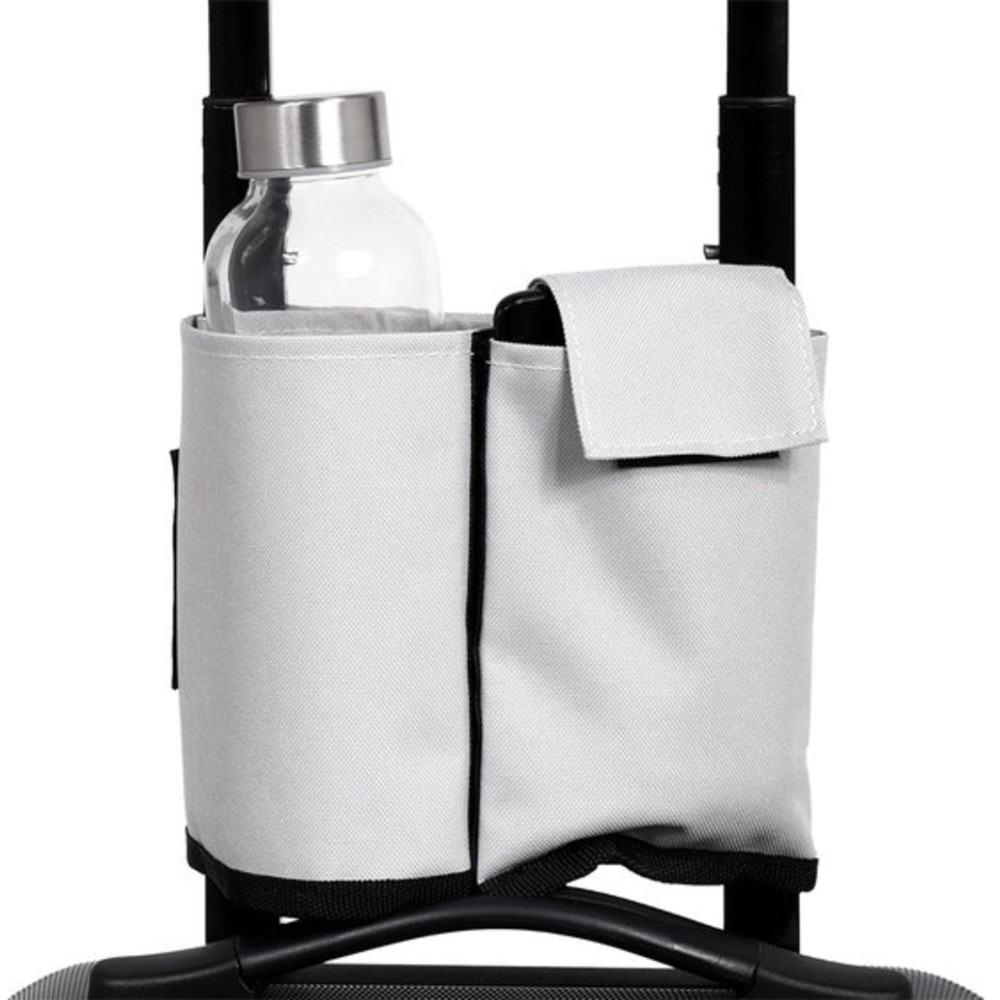 This Norländer suitcase bottle holder is a practical accessory for any trip. It fits snugly on the handle of your suitcase and offers plenty of storage space for bottles and other accessories. The first compartment is ideal for smaller items like your phone, power bank, headphones or charger. The second compartment is designed to hold your water bottle. On the back, there is a zippered pocket, perfect for safely storing money or important documents. Ideal and suitable for any travel suitcase.