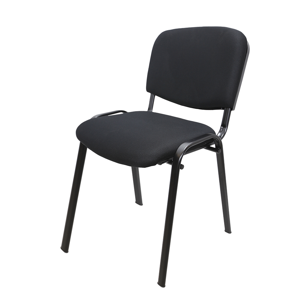 A wonderful visitor chair with textile clothing is sure to satisfy your visitors or customers. Textile upholstery with foam padding and iron frame in black finish make this comfortable chair.