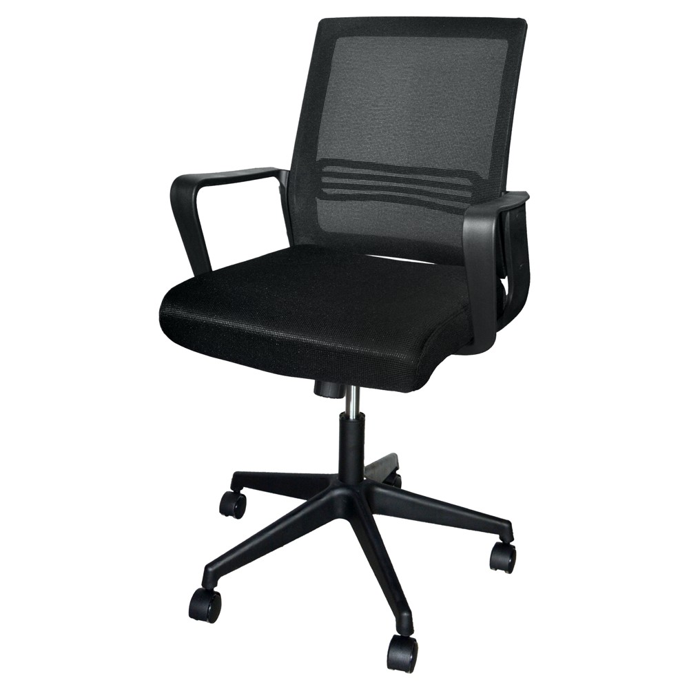 You're reviewing:Office chair with casters, plastic structure, mesh and textile upholstery, black, 57x66xH95-105 cm