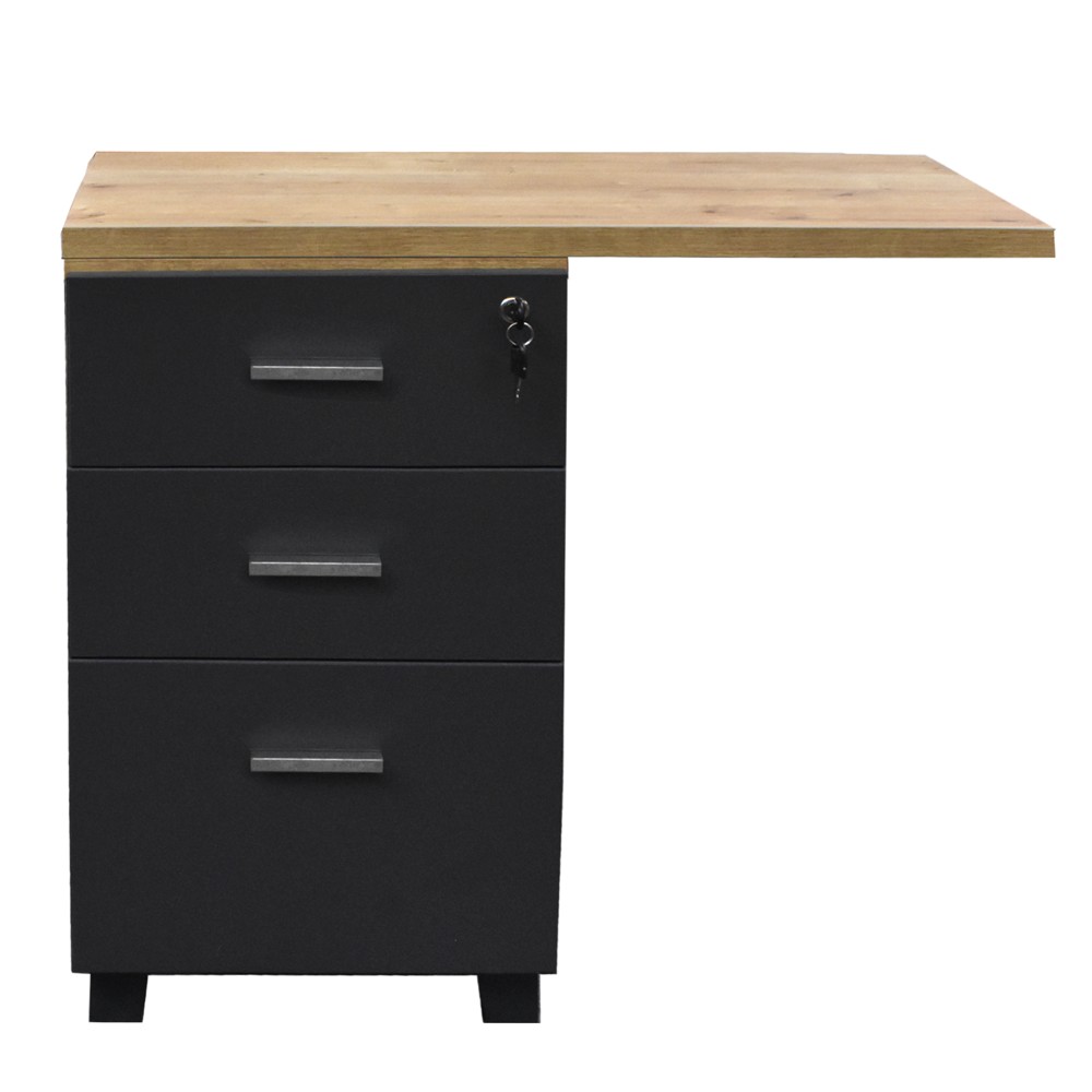 Office desk drawer, Standart, 3 drawers, 1 with lock, melamine, oak/anthracite, 80x50x75 cm