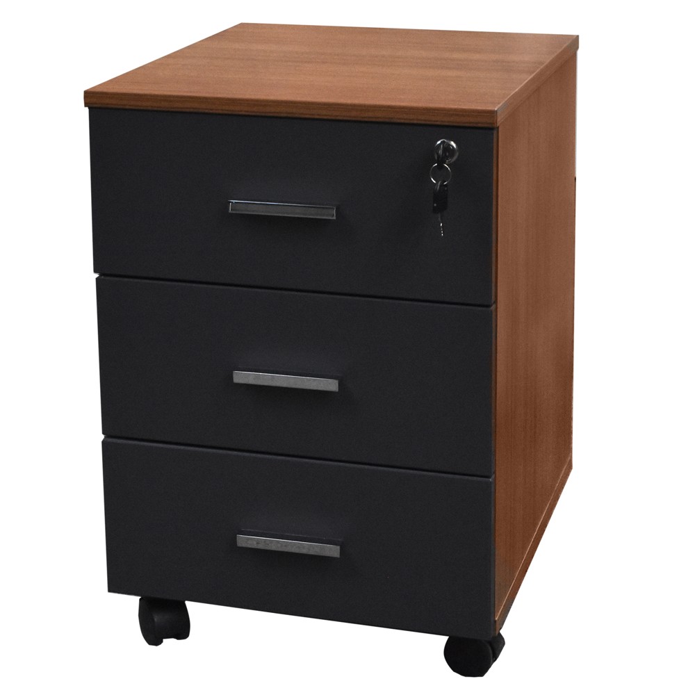 You're reviewing:Office desk drawer, Standart, 3 drawers, 1 with lock, melamine, teak/anthracite, 40x47x60 cm