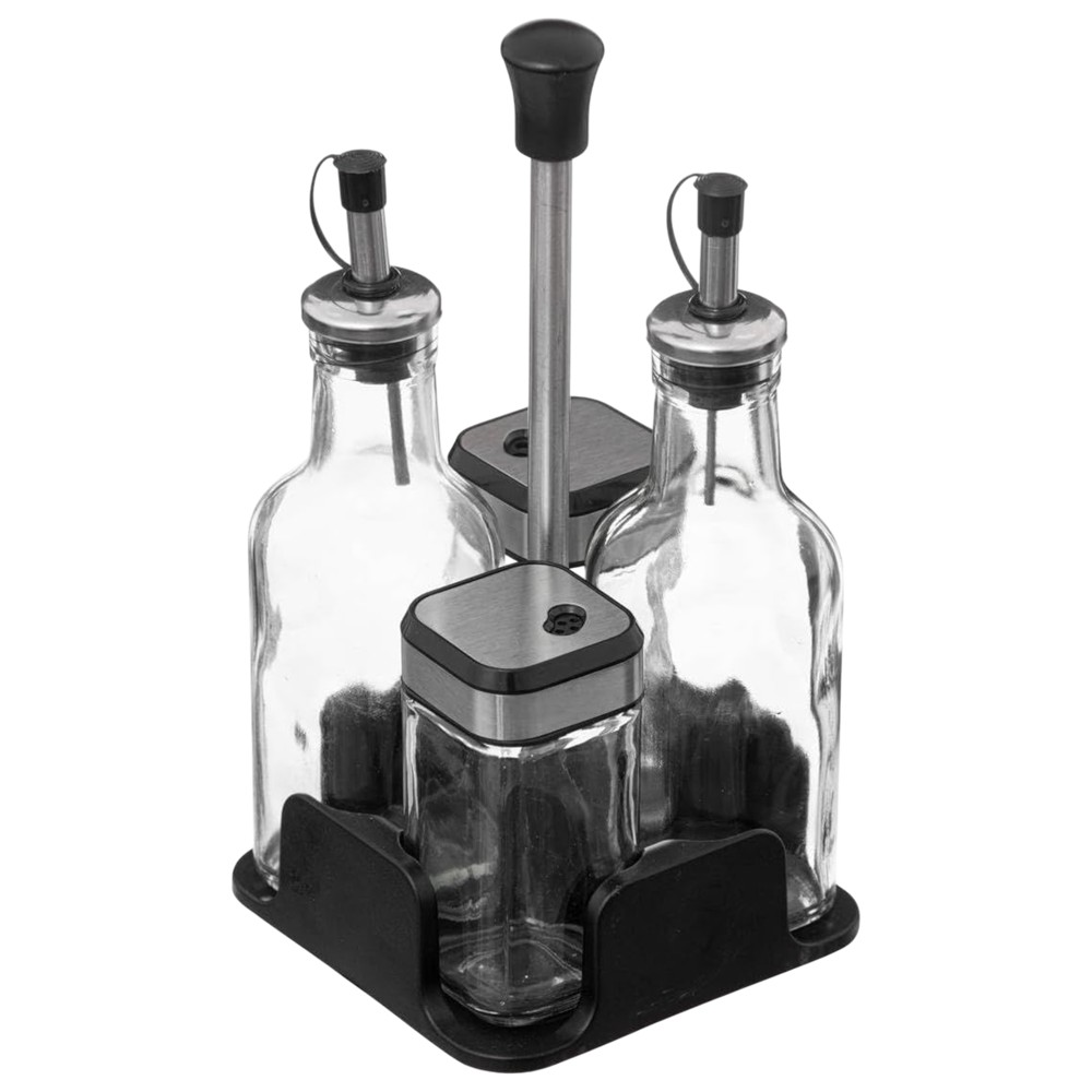 Oil/Vinegar/Salt/Pepper holder, glass, transparent/black, 11.5 x 11.5 x H. 23 cm
