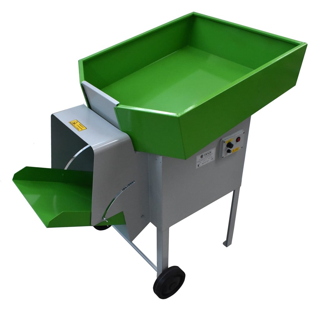 The Tornado is an electric peeler/separator designed to mainly meet the needs of olive growers and producers, but is also perfectly suited for cleaning other types of crops such as legumes, cereals and nuts. The operation of the Tornado is as simple as it is effective, taking advantage of the aeration produced by the electric motor, in fact the Tornado is able to clean the entire crop from any kind of excess material such as leaves and other dirt through a calibrated air stream in variability. Equipped with a strong steel frame coated with epoxy polyester powder, which makes it perfectly suitable for contact with food, the Tornado has a 350 Watt electric motor and is capable of removing leaves up to a maximum of 4000 kg of grains. The flow of olives is adjustable through the special height-adjustable spout in the upper tank and the perfectly peeled olives exit by gravity from the lower spout. The Tornado also has a practical removable grille to protect the fan to facilitate cleaning or replacement operations, an air conveyor and 2 wheels on the base to facilitate movement and storage.