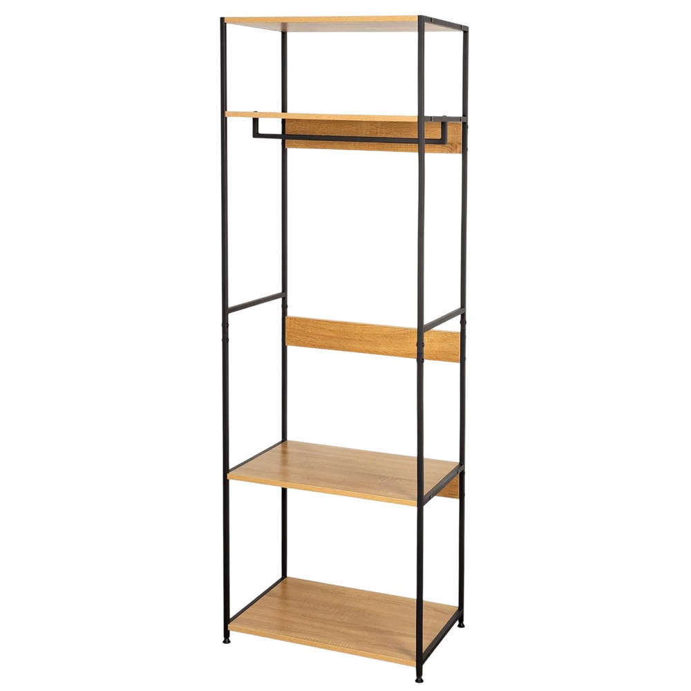 This open wardrobe is designed to provide an organized and functional solution for storing your clothes and accessories. With a metal frame and melamine top, this wardrobe offers a combination of durability and modern aesthetics to suit most environments. With built-in compartments, this wardrobe offers an organized system to keep clothes, shoes, and accessories organized. The compartments help keep the space organized and make it easy to find the items you're looking for. This open wardrobe with compartments is an ideal solution for those looking for a combination of style and functionality for organizing their space.