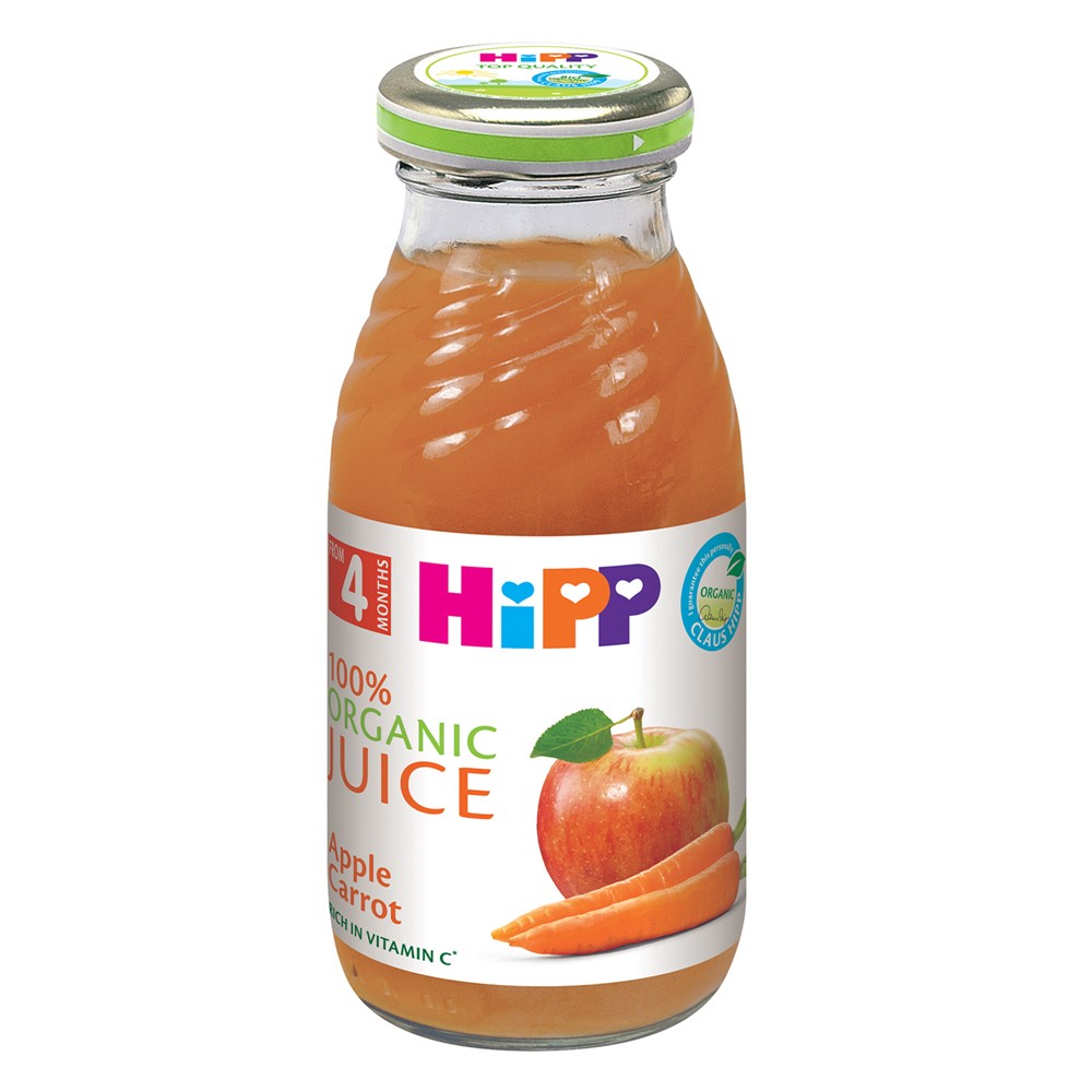 Organic apple and carrot juice for babies, with a content enriched with vitamin C, to strengthen the immune system of children. Method of preparation: Shake before use. It can be used concentrated or diluted with water in a 1:2 ratio. After opening, store in the refrigerator and consume within 3 days. Free of gluten, added sugar, preservatives, flavorings, coloring. This product is suitable for use in children over 4 months of age.