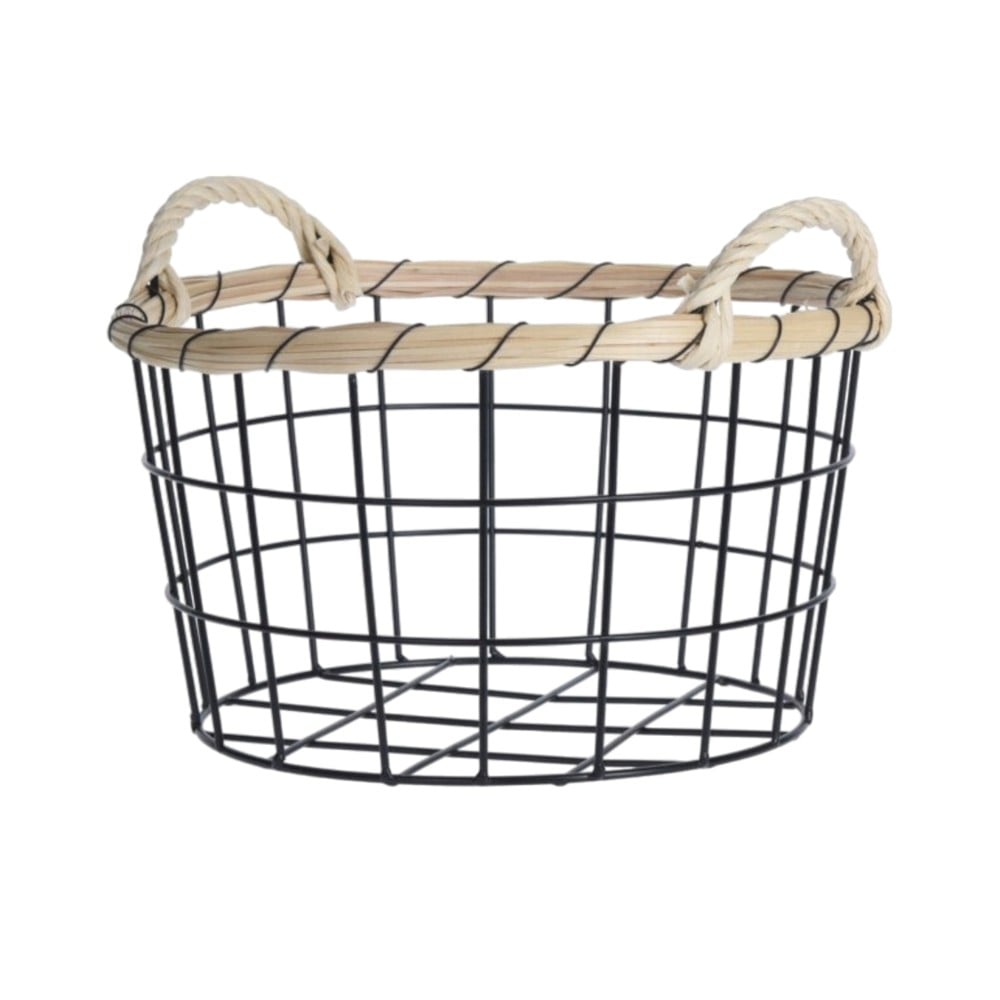 Organization basket, metal/bamboo, black, S-26xH14.5 cm