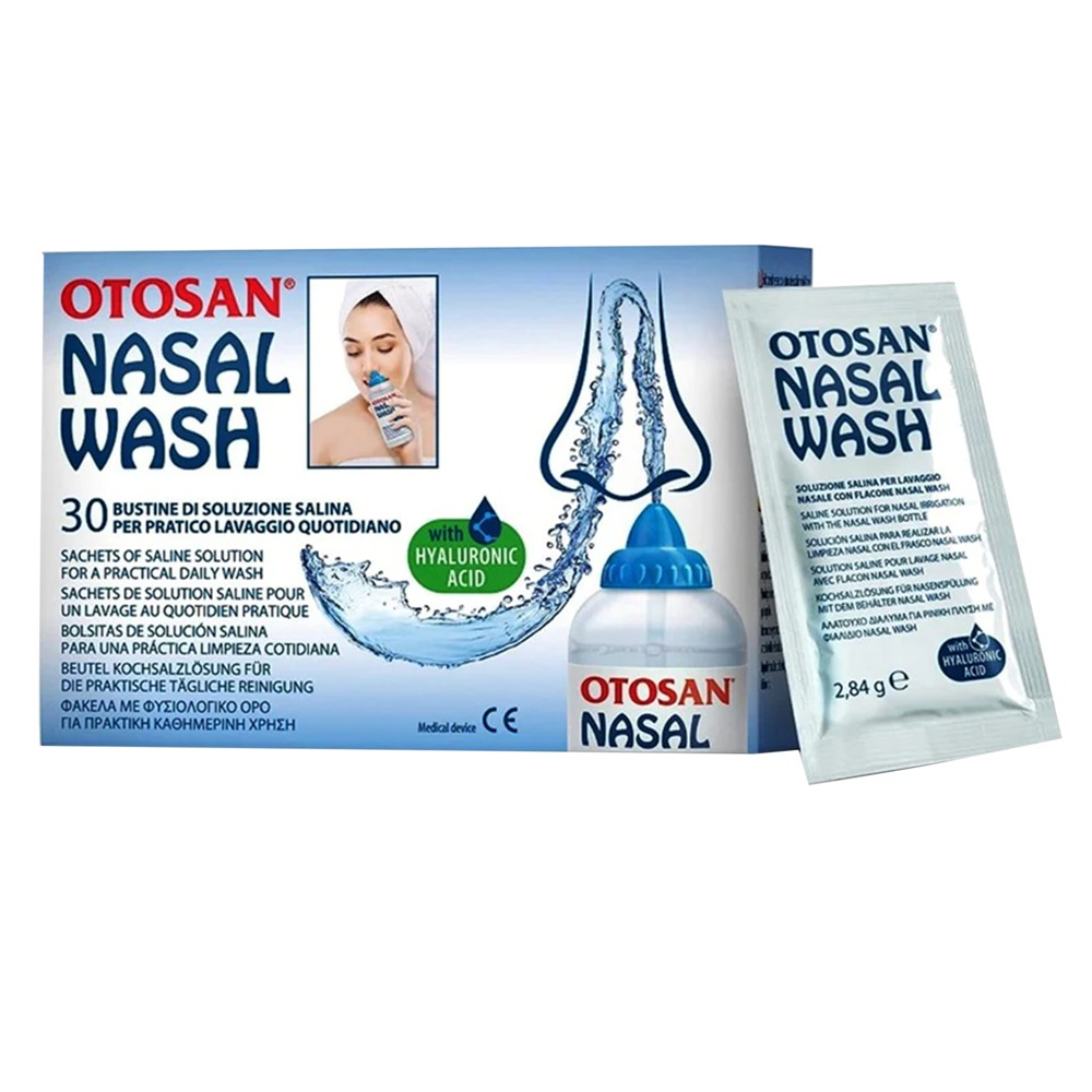 favors mucociliary cleaning; Fill the bottle with warm drinking water at a temperature of 35-40°C, up to the line indicating the level of 240 ml. Place one or two sachets: isotonic or hypertonic solution. Shake the bottle until the solution is completely dissolved in the water.