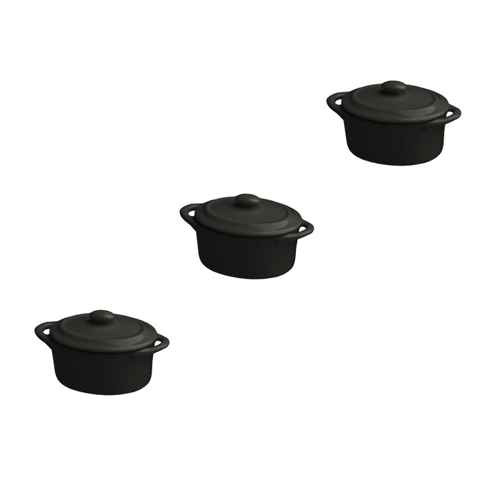 Oval frying pan set with lid Mignion (PK 3), porcelain, black, Dia.7 cm